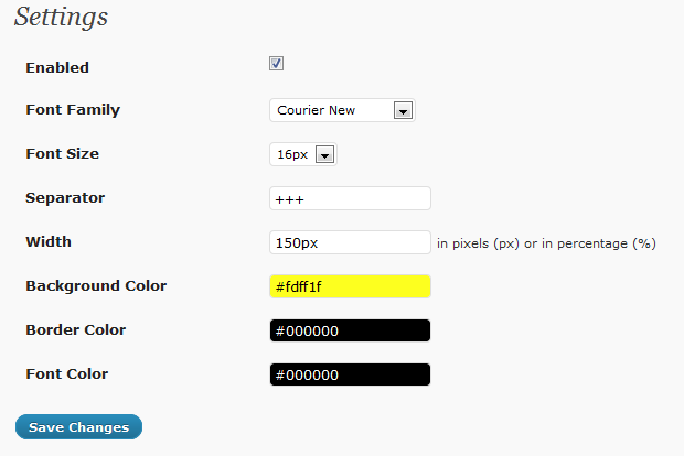 Vous pouvez très facilement modifier la police de caractère, la taille, le symbole séparateur de liens, les couleurs d'arrière-plan, de bordure et du texte en quelques clics seulement !